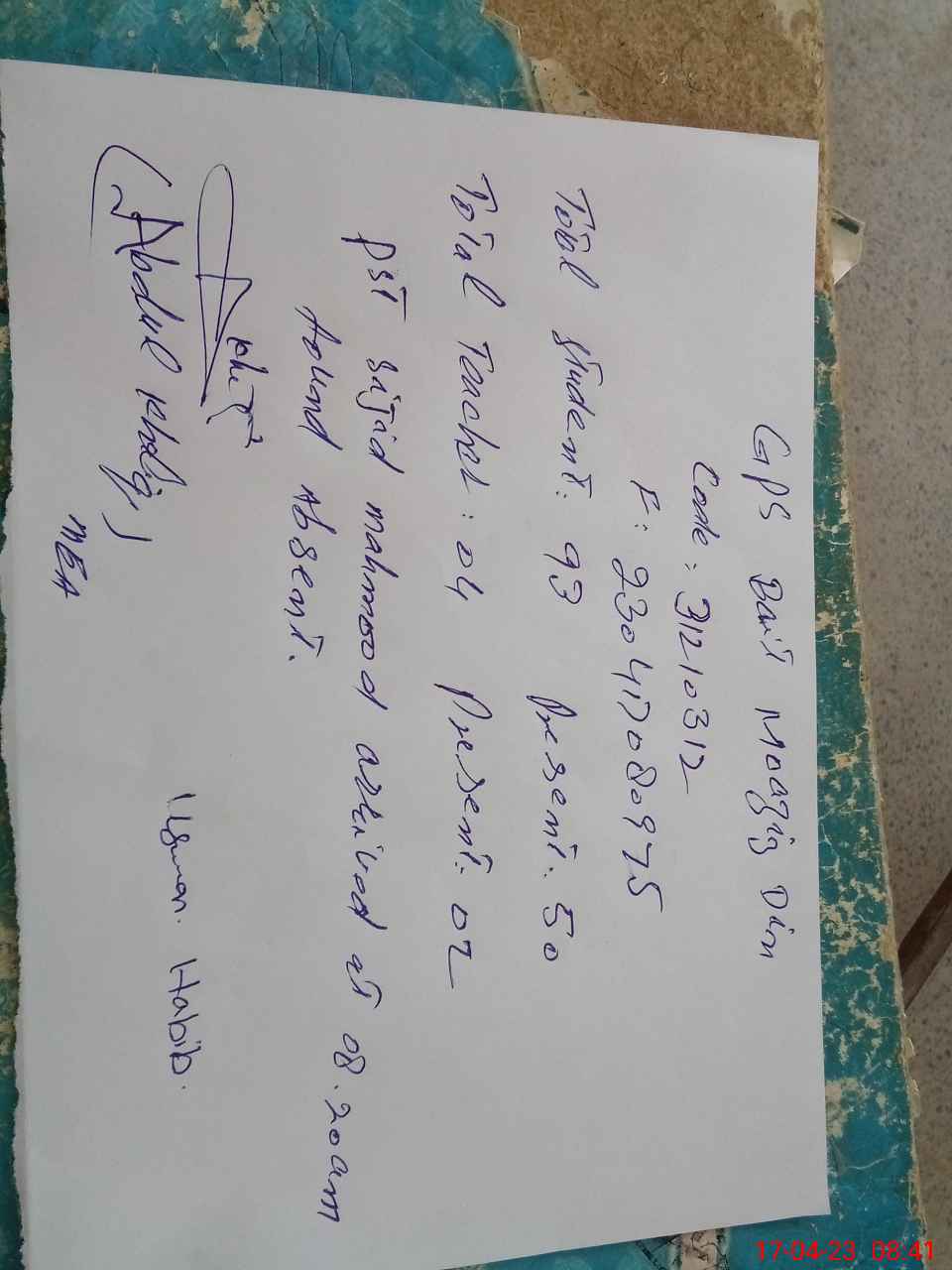 | EMIS Code: 31210312 | Name of School: GPS BAIT MOAZIZ-UD-DIN | |||