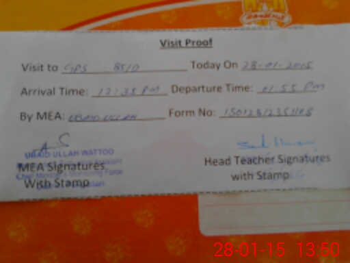 | Attendance Register | Head Teacher | MEA with School | Visit Proof |