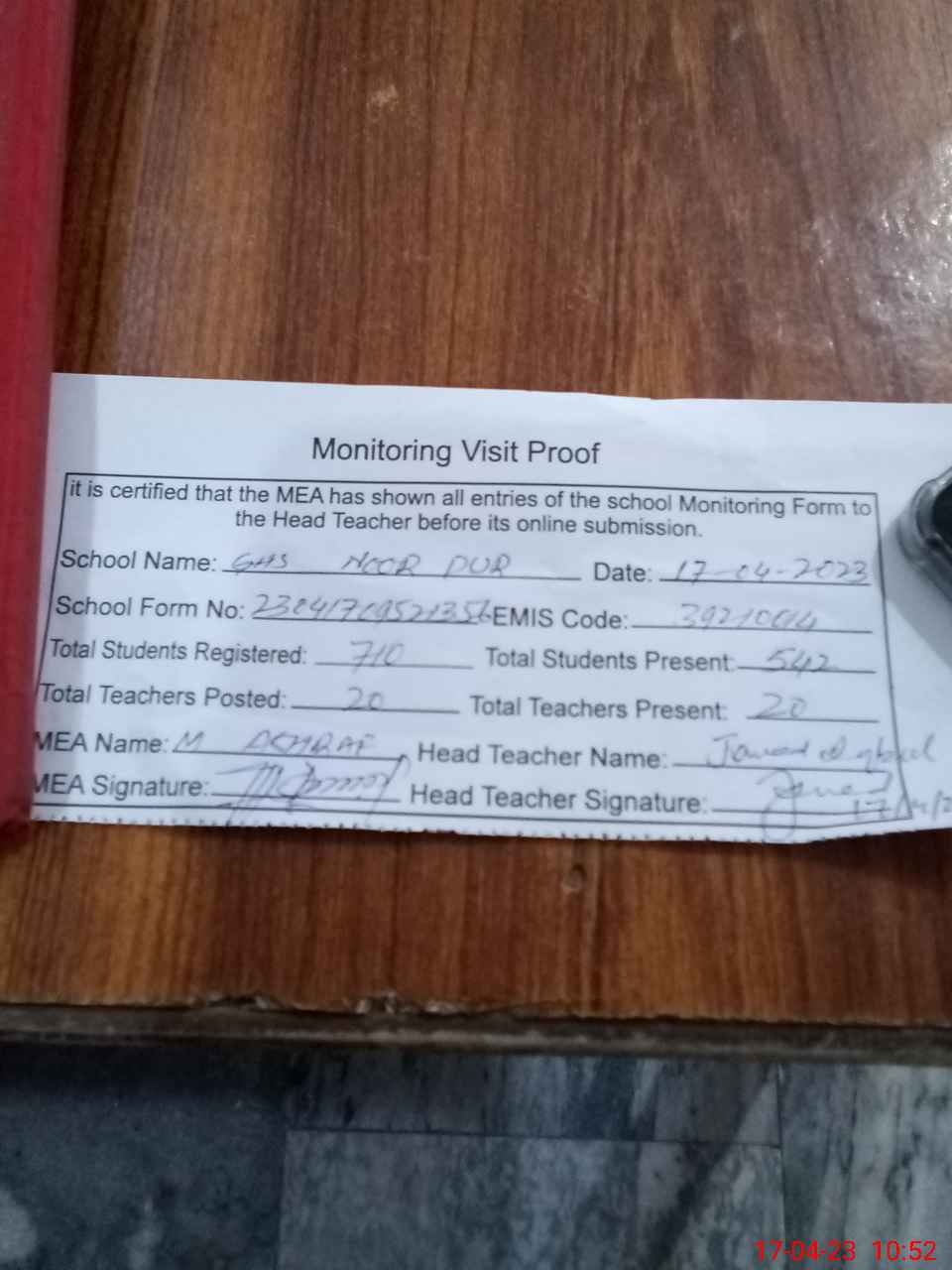 | EMIS Code: 39210014 | Name of School: GHS NOOR PUR PAKPATTAN | |||
