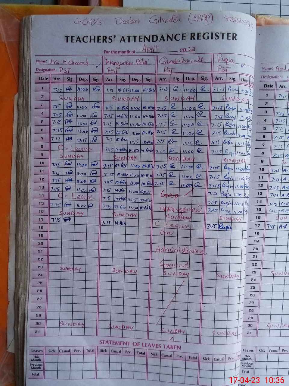 | 33**** | Qu**** UlAi**** Al**** | PST | Regular | 2 | 0 | 0 | 0 | 0 | 0 | 0 | 0 | 2 | Absent (Un-Authorized) |