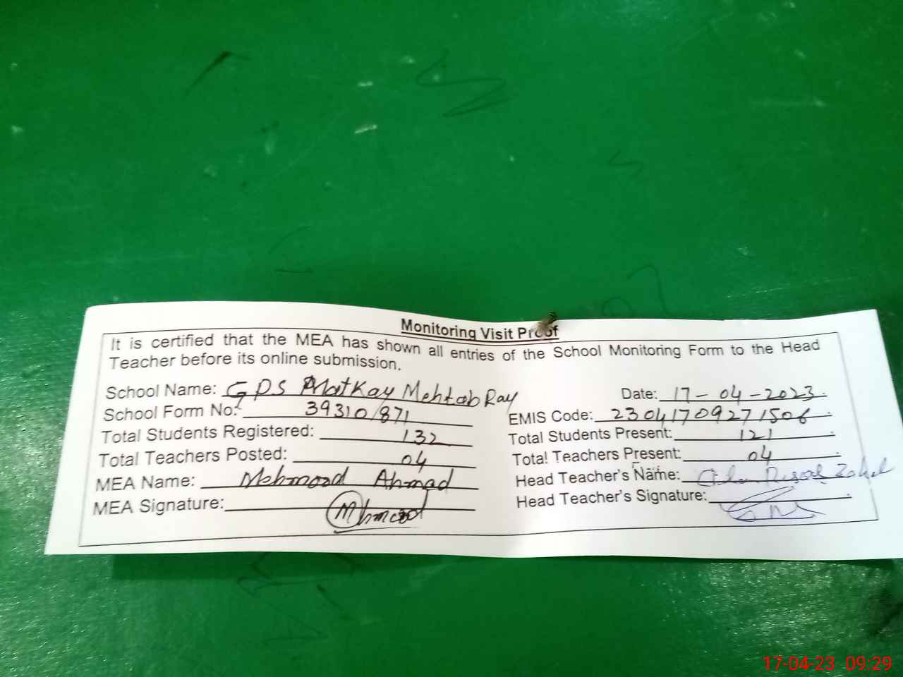 | EMIS Code: 39310871 | Name of School: GPS MATEY KAY MAHTAB RAI | |||