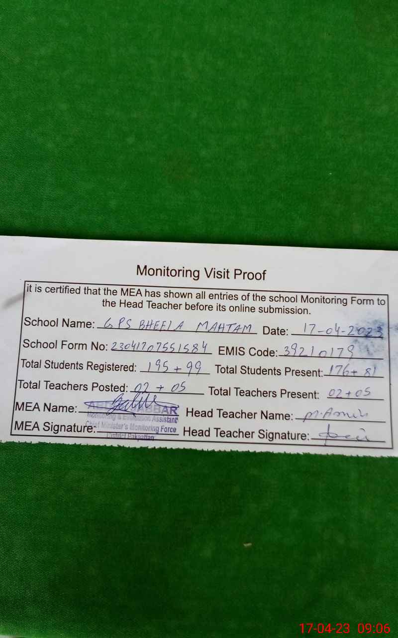 | EMIS Code: 39210179 | Name of School: GPS BHEELA MAHTAM | |||