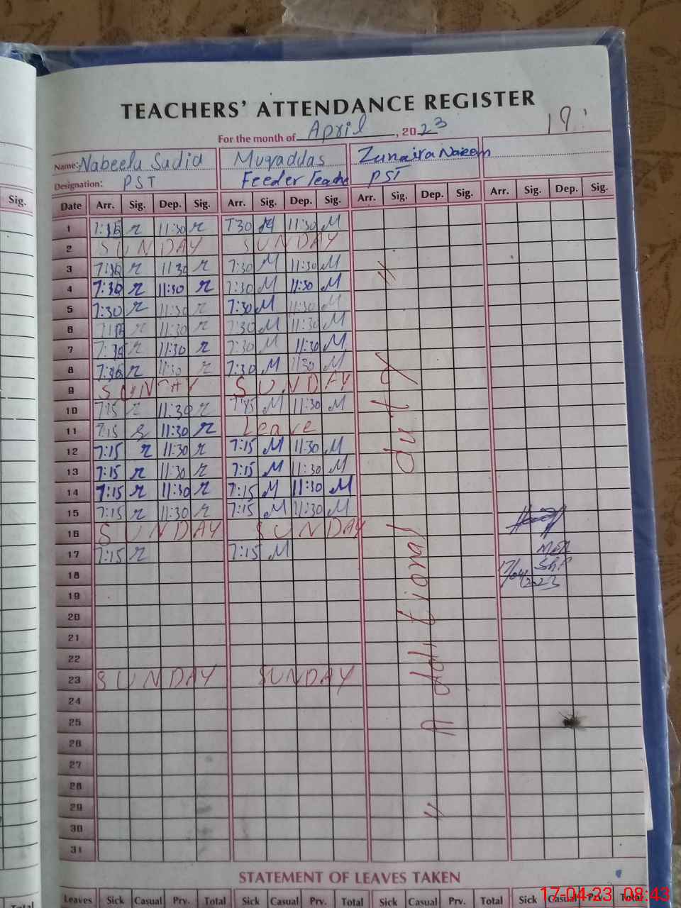 | 35**** | Zu**** Na**** | Contract | 0 | 0 | 31 | 0 | 0 | 0 | 0 | 0 | 0 | Absent (Un-Authorized) | |