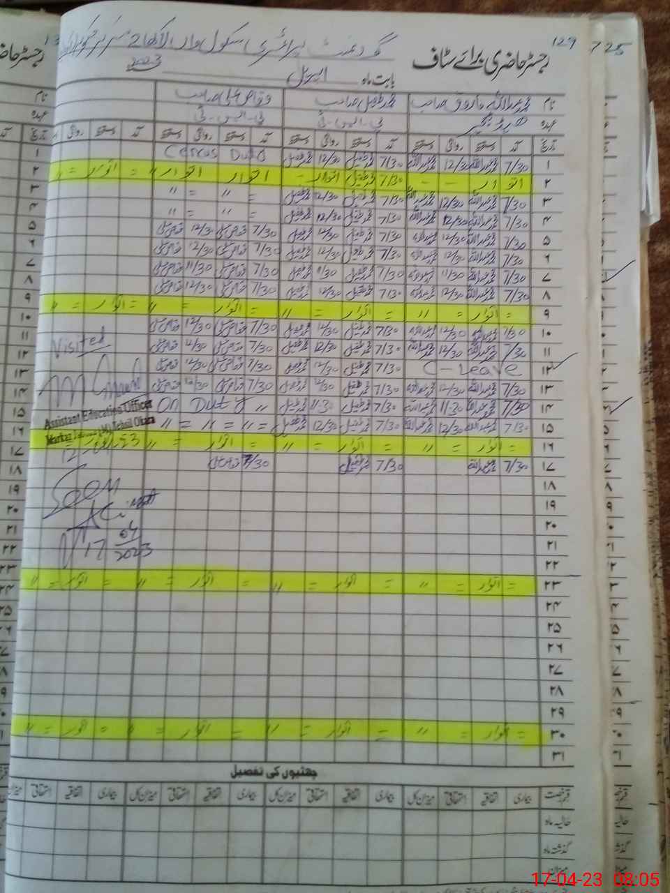 | CNIC | Full Name | Designation | R/C | Absence During Last Calender Month |