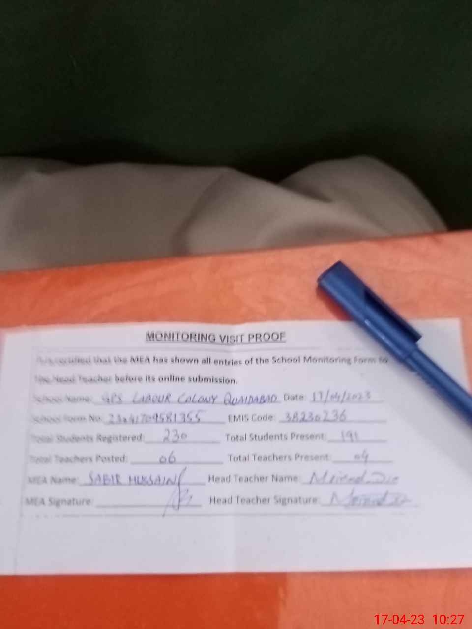 | EMIS Code: 38230236 | Name of School: GPS LABOUR COLONY | |||