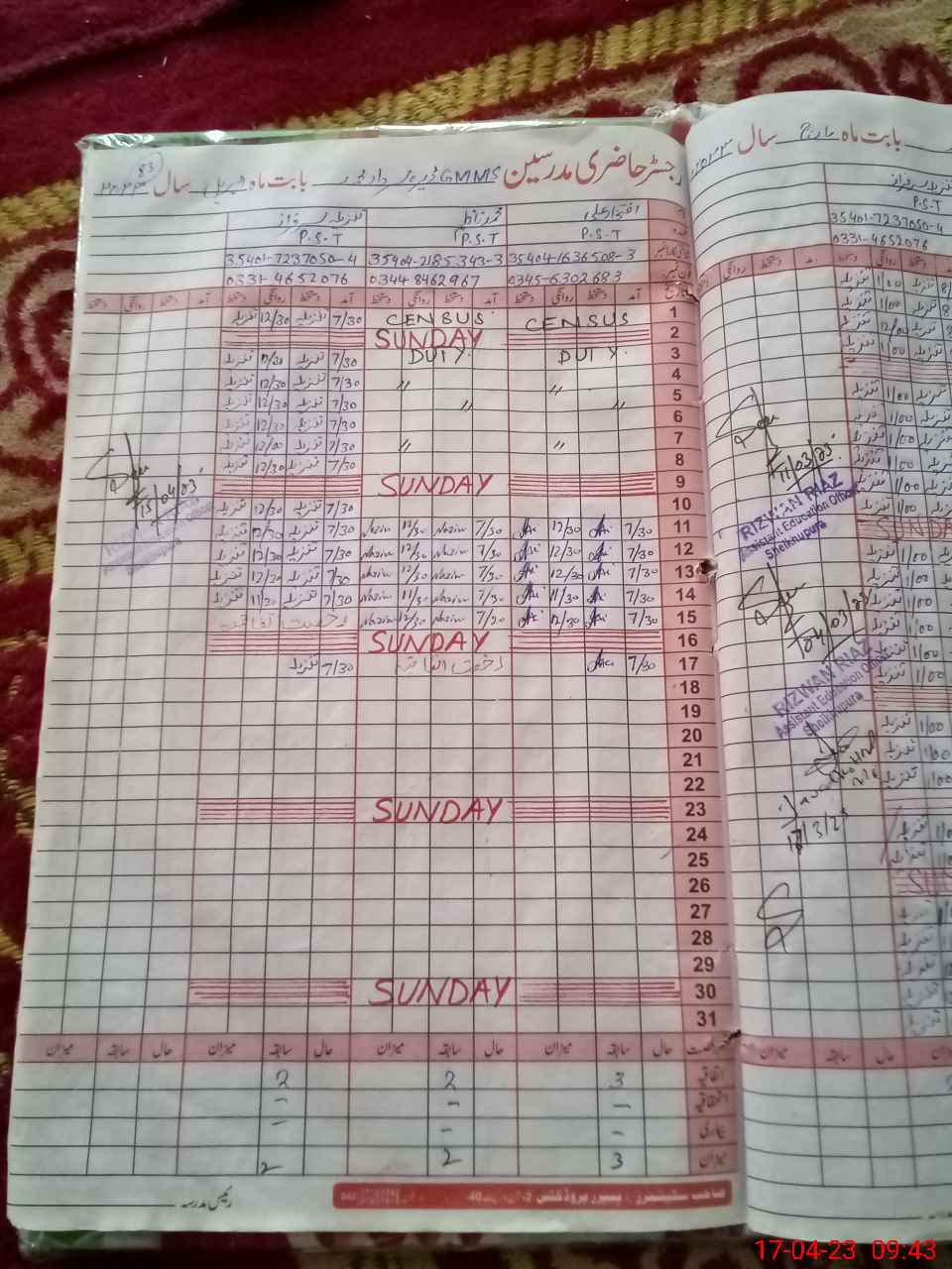 | Name: Mu**** Na**** Designation: (School Headmaster's/Headmistress's) PST Phone/Cell Number: 03**** |