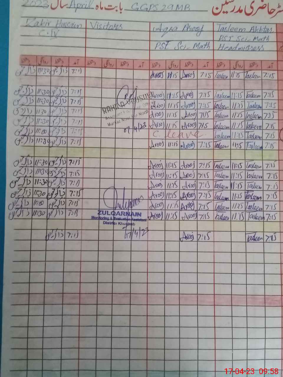 | Name: Aq**** Ar**** Designation: (School Headmaster's/Headmistress's) PST Phone/Cell Number: 03**** |