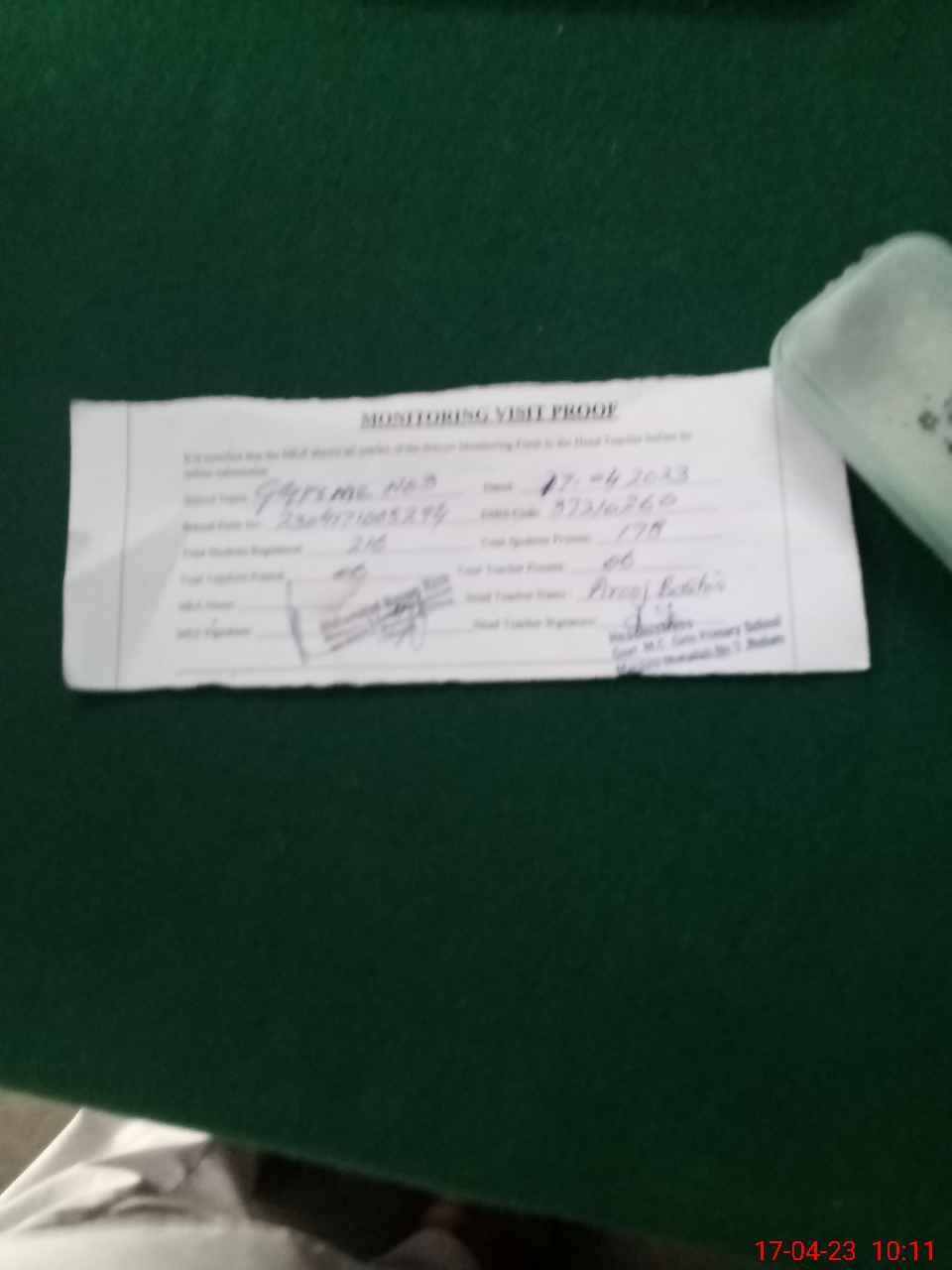 | Attendance Register | Head Teacher | MEA with School | Visit Proof |