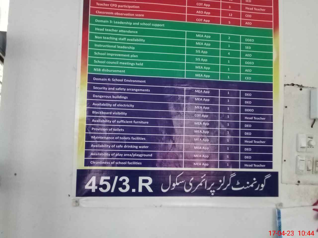 | EMIS Code: 31140445 | Name of School: GGPS CHAK 45/3-R | |||