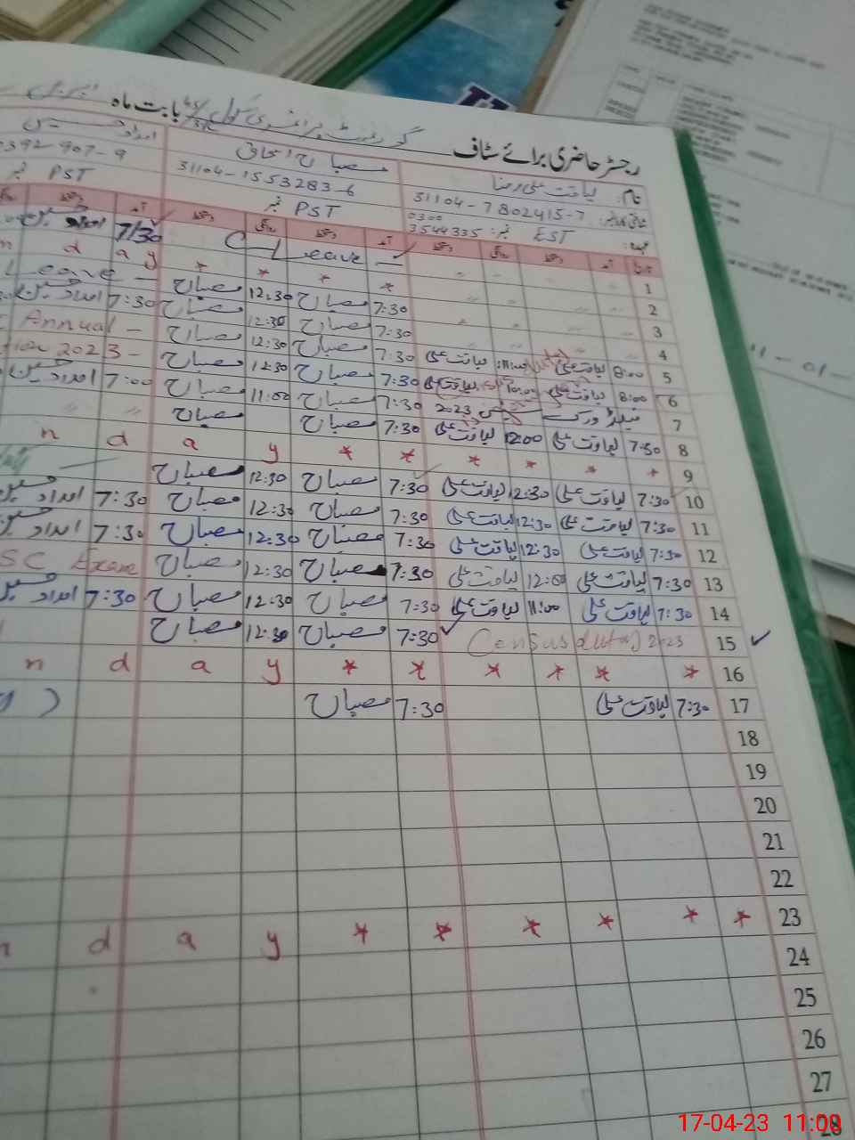 | CNIC | Full Name | Designation | R/C | Absence During Last Calender Month |
