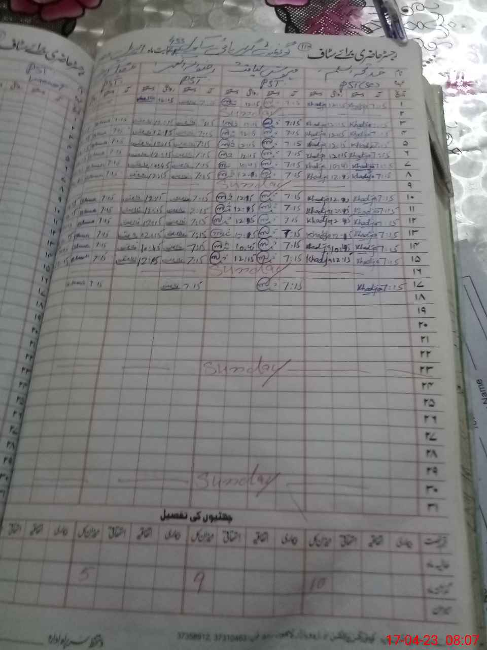 | CNIC | Full Name | Designation | R/C | Absence During Last Calender Month |