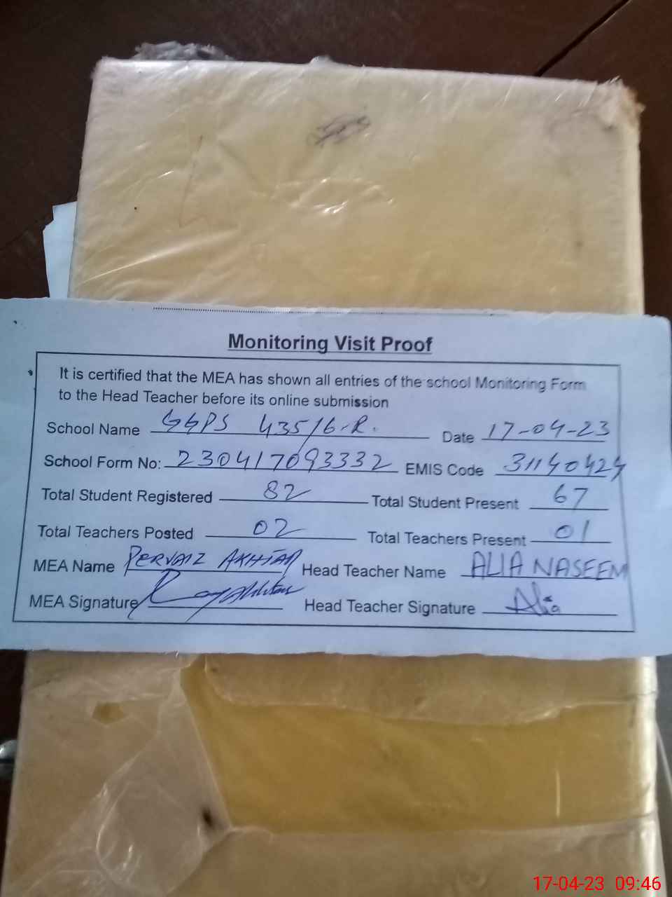 | EMIS Code: 31140424 | Name of School: GGPS CHAK NO 435/6R | |||