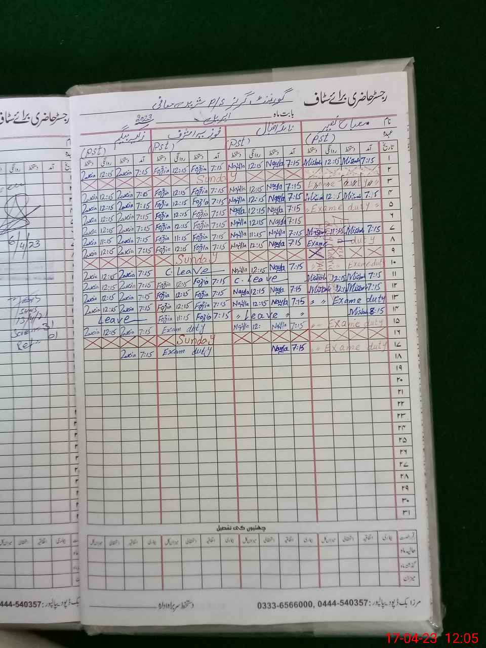 | 35**** | Mi**** Na**** | PST | Regular | 0 | 1 | 0 | 0 | 0 | 0 | 0 | 0 | 0 | Exam Duty |