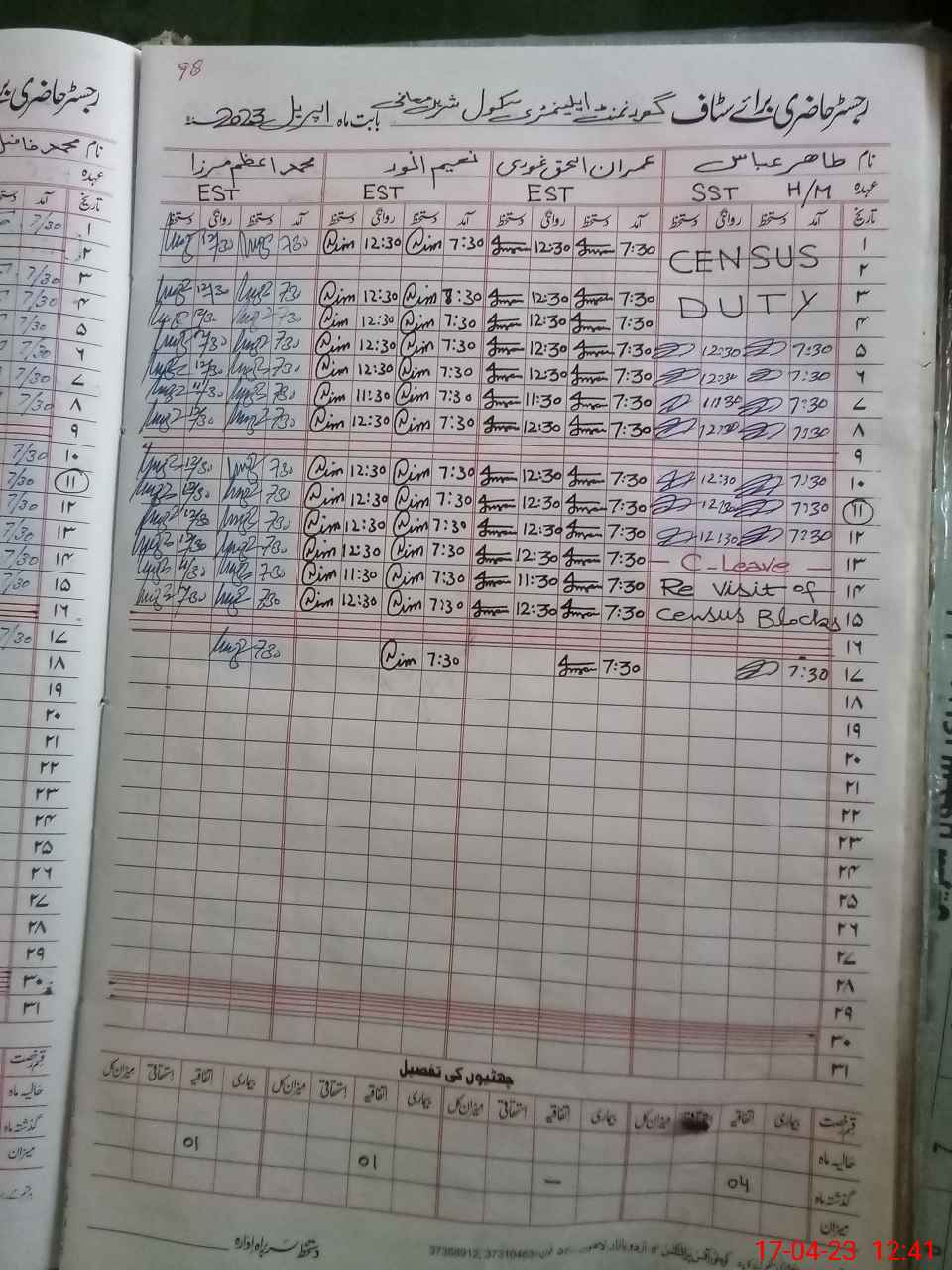 | CNIC | Full Name | Designation | R/C | Absence During Last Calender Month |