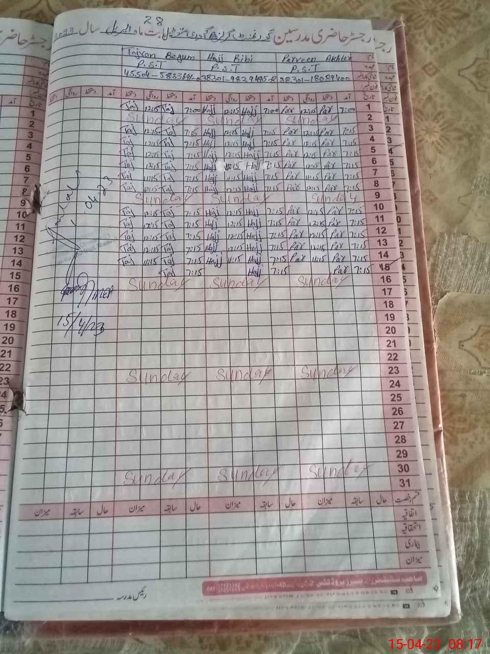| Name: Bi**** Am**** Designation: (School Headmaster's/Headmistress's) HEADMASTER Phone/Cell Number: 03**** |