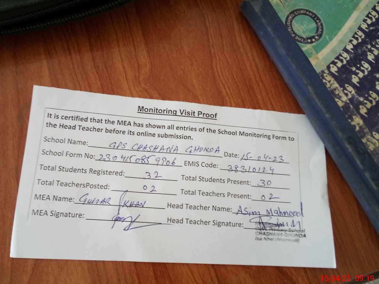| EMIS Code: 38310124 | Name of School: GPS CHASHANA GHUNDA | |||