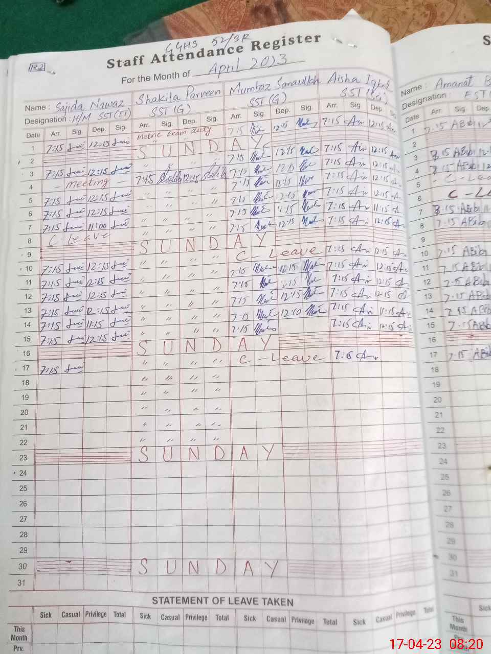 | 35**** | Sh**** Pa**** | SST | Regular | 0 | 0 | 0 | 0 | 0 | 0 | 0 | 0 | 0 | Exam Duty |