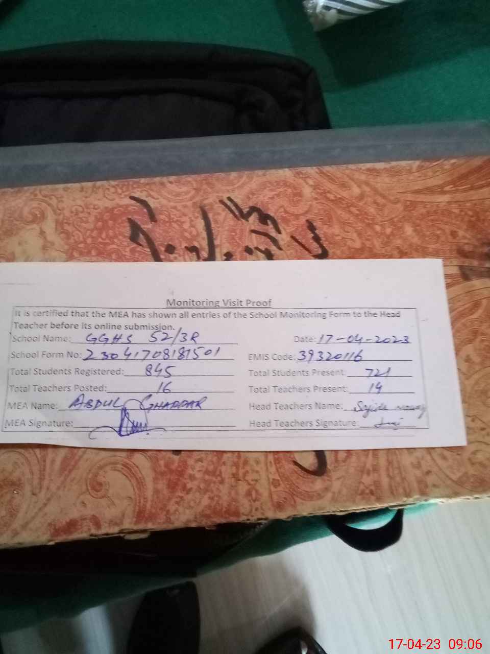 | EMIS Code: 39320116 | Name of School: GGHS 52/3-R | |||