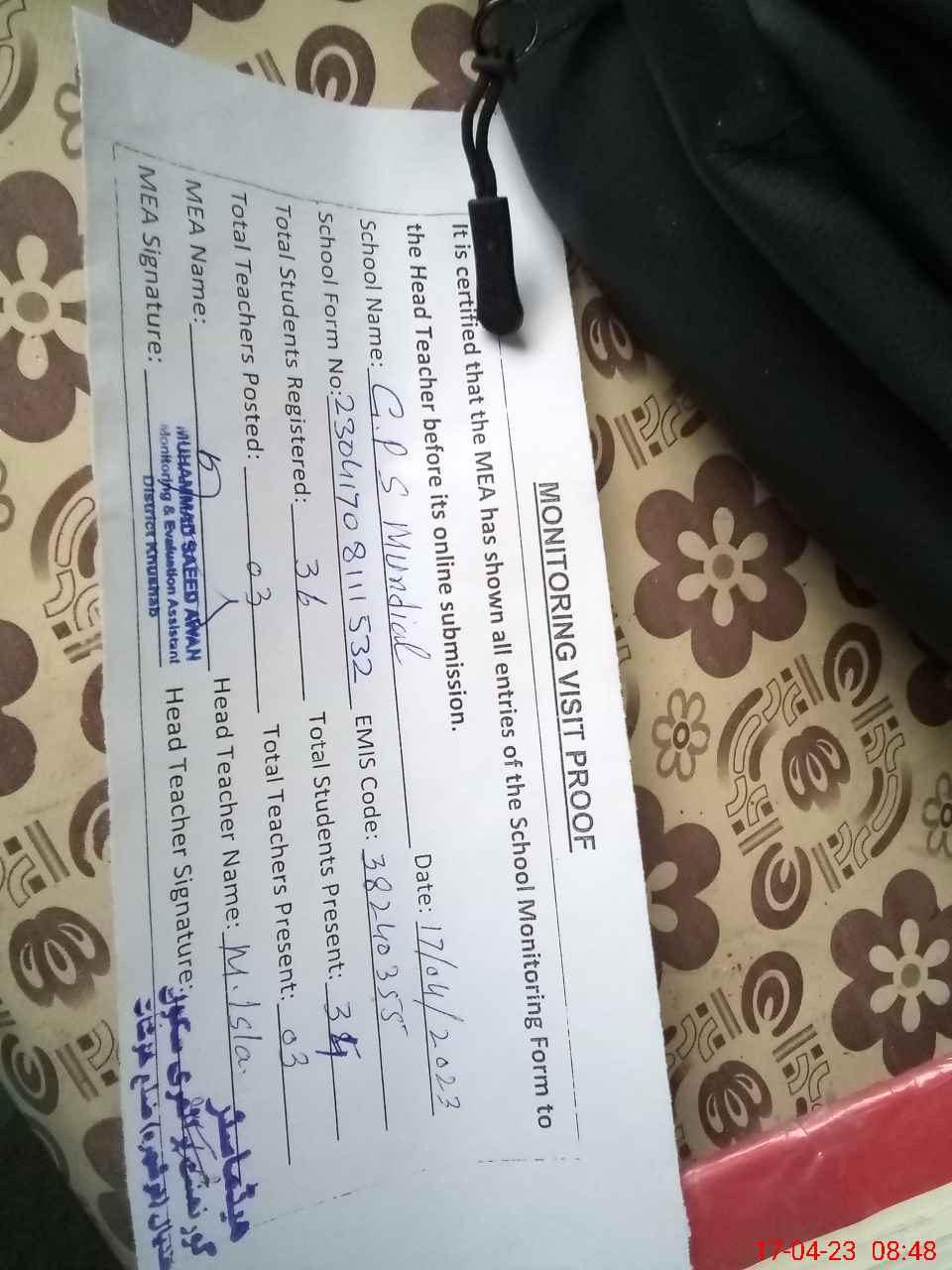 | EMIS Code: 38240355 | Name of School: GPS MUNDIAL NOUSHERA | |||