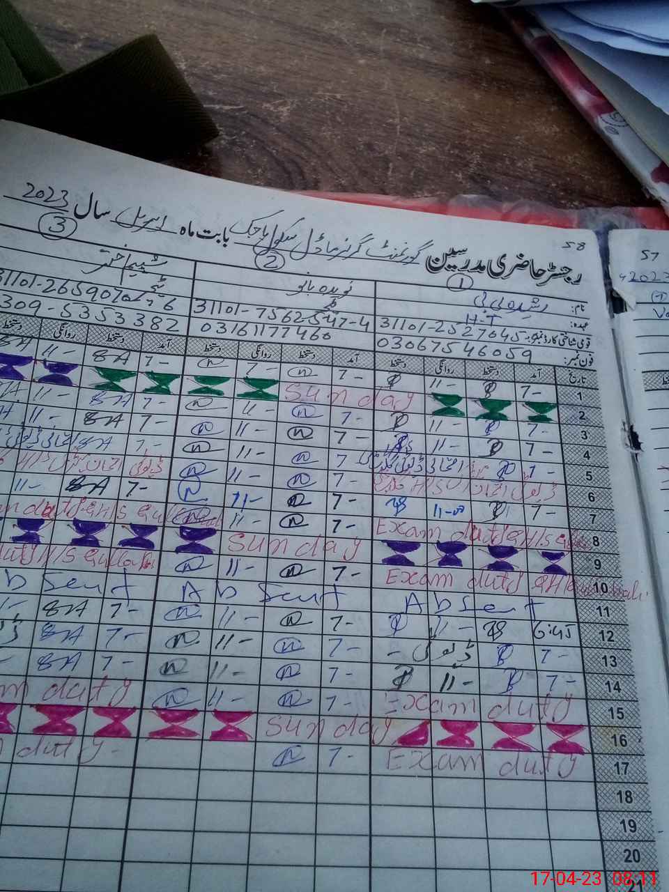 | 31**** | Sh**** Ak**** | PST | Regular | 0 | 0 | 0 | 0 | 0 | 0 | 0 | 0 | 0 | Exam Duty |