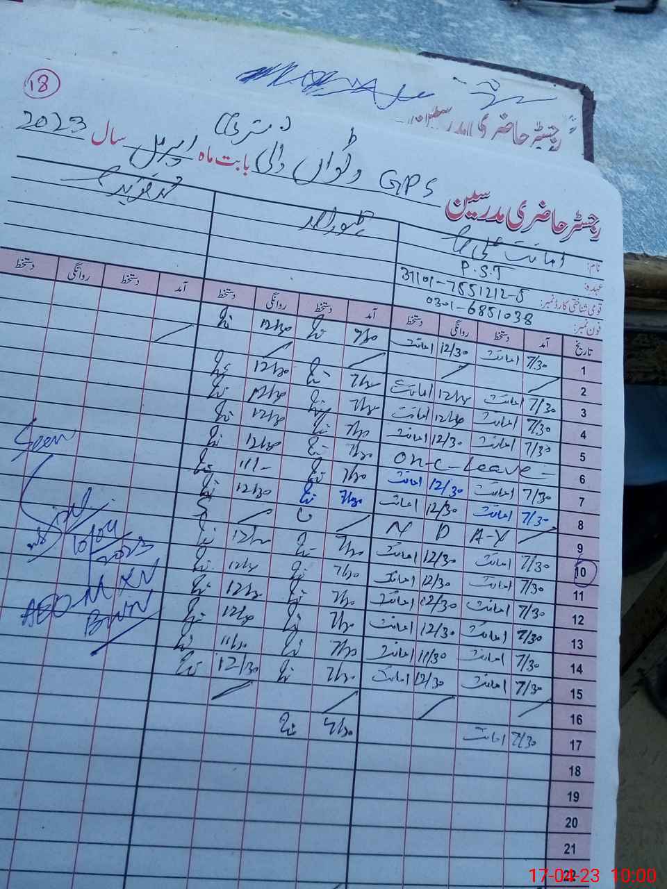 | Name: Am**** Al**** Designation: (School Headmaster's/Headmistress's) PTC Phone/Cell Number: 03**** |