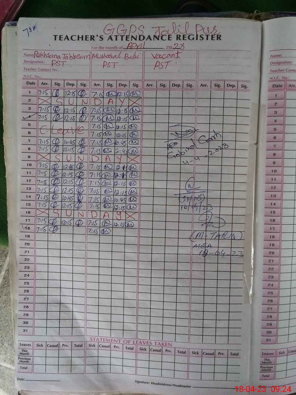| Name: RU**** TA**** Designation: (School Headmaster's/Headmistress's) ESE(ARTS) Phone/Cell Number: 03**** |