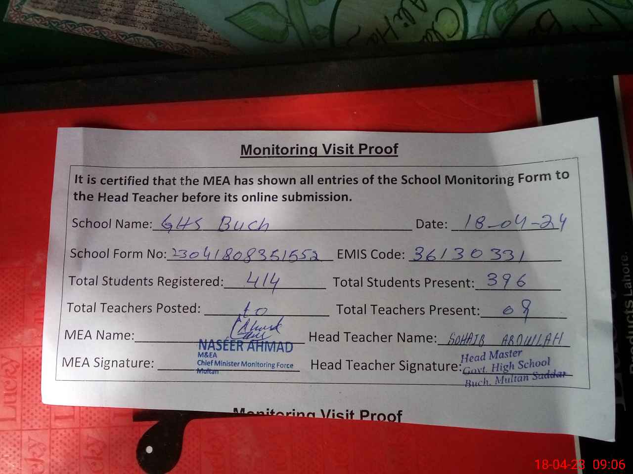 | EMIS Code: 36130331 | Name of School: GHS BUCH P/O KHOKHAR | |||
