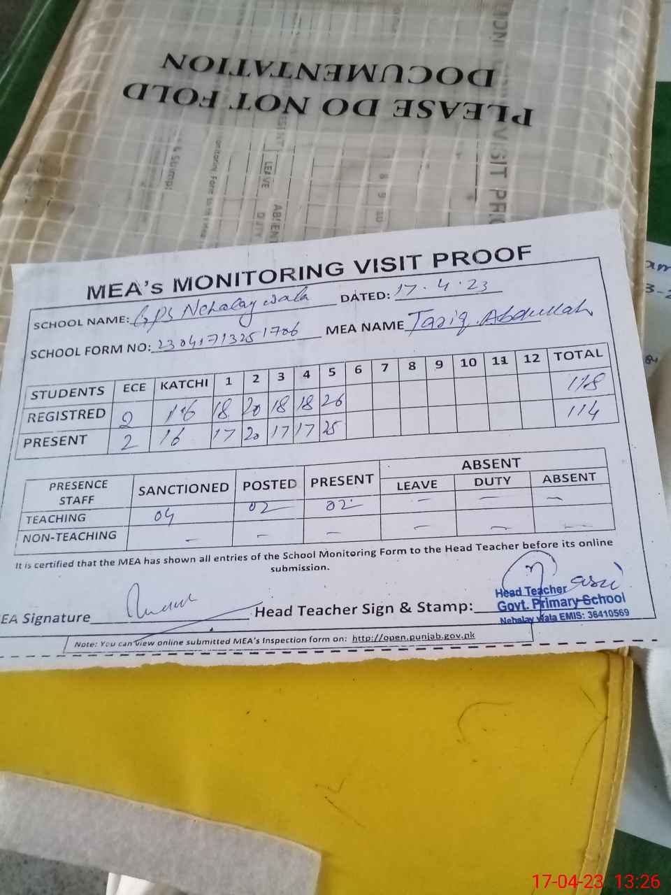 | EMIS Code: 36410569 | Name of School: GPS NEHALAY WALA, ABDUL HAKIM | |||