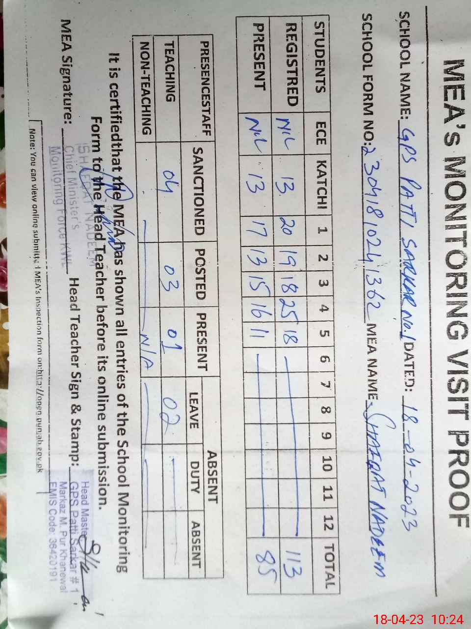 | EMIS Code: 36420191 | Name of School: GPS PATTI SARKAR NO.1 P/O 5/AH, KHANEWAL | |||