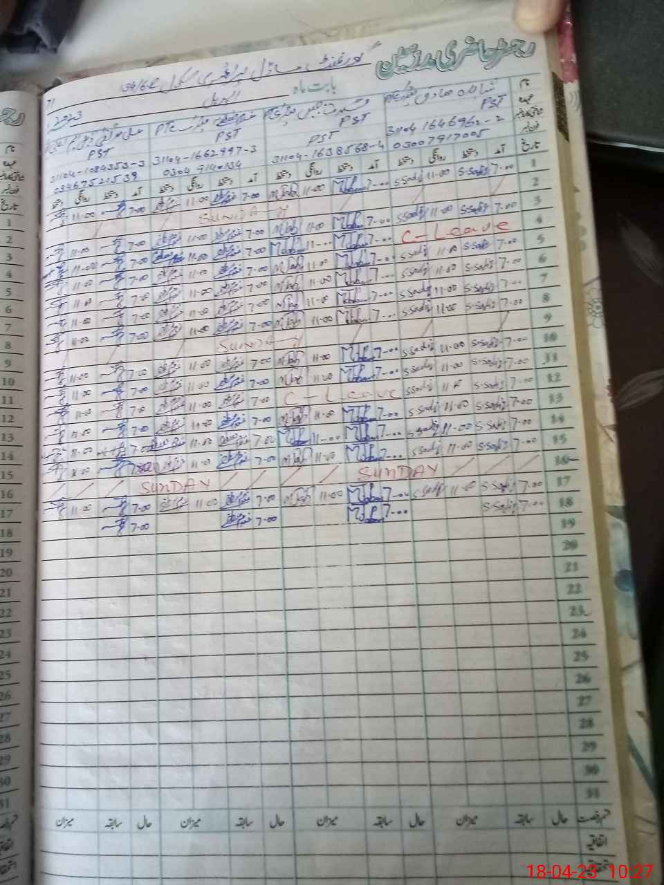 | CNIC | Full Name | Designation | R/C | Absence During Last Calender Month |