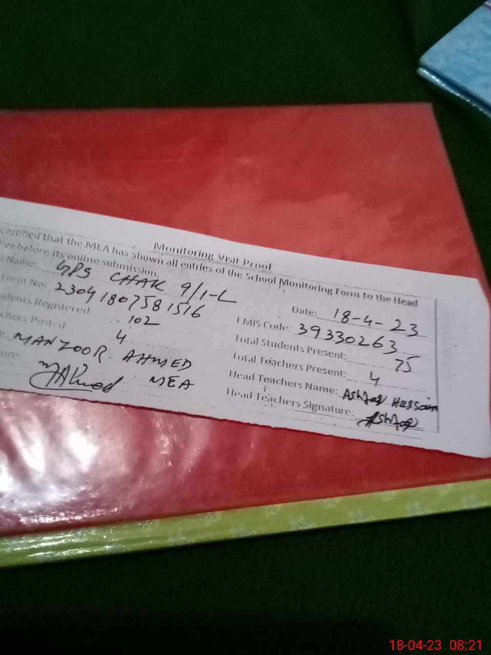 | EMIS Code: 39330263 | Name of School: GPS CHAK 9/I.L | |||