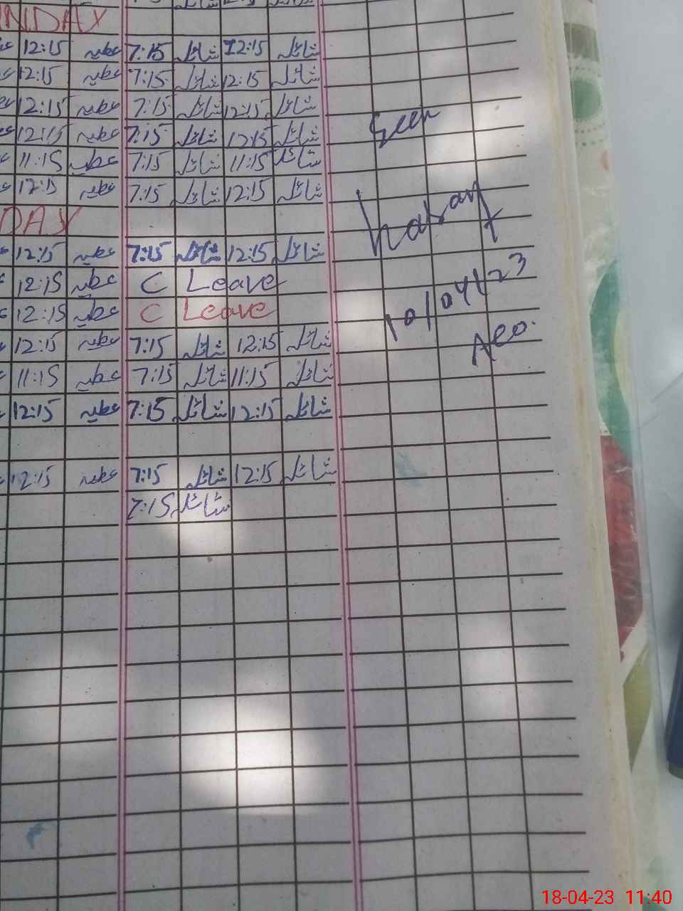 | Leave | Duty | Absent | Maternity | Medical | Ex- Pak |