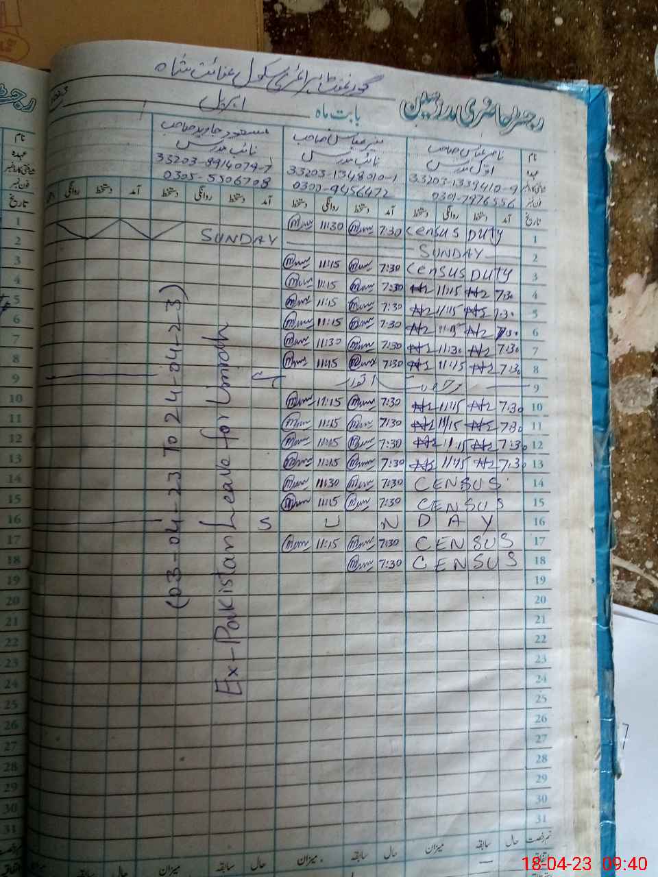| Name: Mu**** Ab**** Designation: (School Headmaster's/Headmistress's) PST Phone/Cell Number: 03**** |