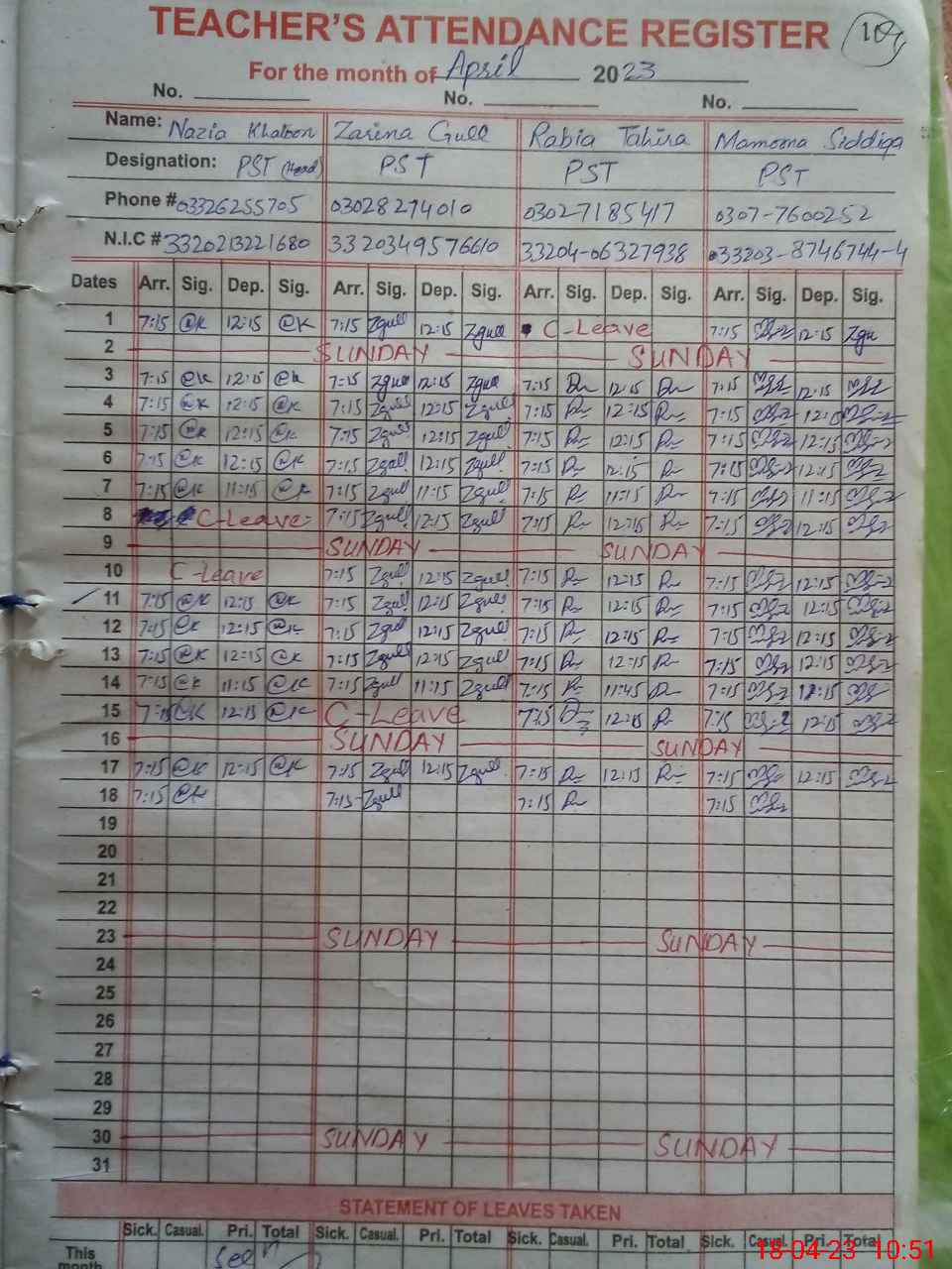| Name: NA**** KH**** Designation: (School Headmaster's/Headmistress's) PST Phone/Cell Number: 03**** |
