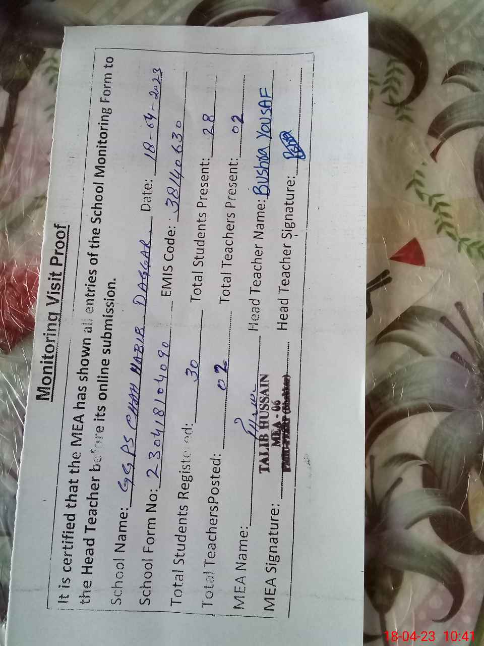 | EMIS Code: 38140630 | Name of School: GGPS CHAH HABIB DAGGAR | |||