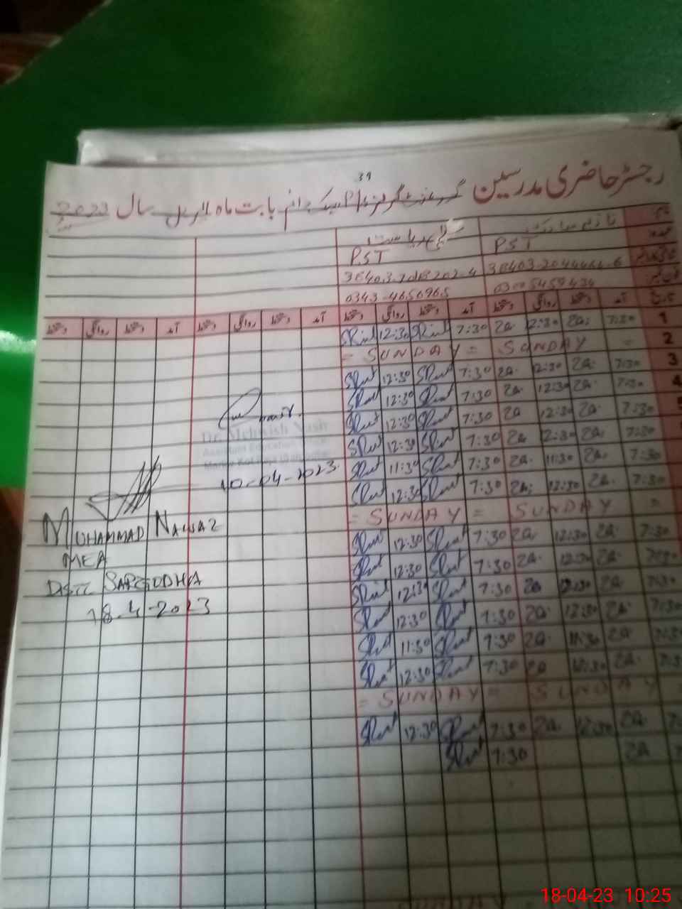 | Name: NA**** MU**** Designation: (School Headmaster's/Headmistress's) PST Phone/Cell Number: 03**** |