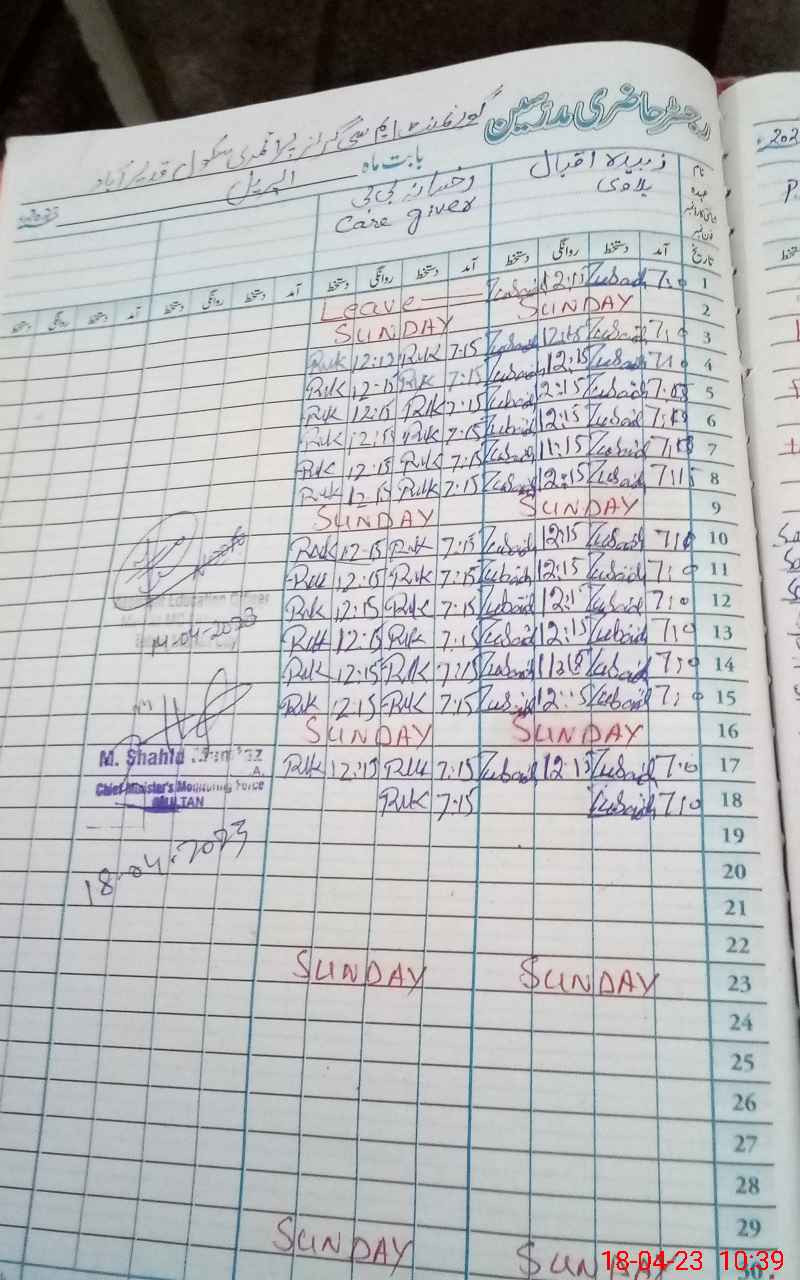 | CNIC | Full Name | Designation | R/C | Absence During Last Calender Month |