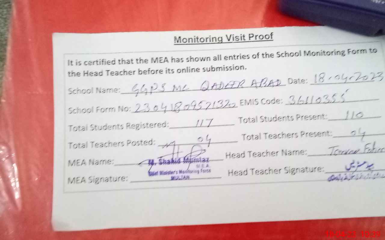 | EMIS Code: 36110355 | Name of School: GGPS MC QADEER ABAD MULTAN | |||