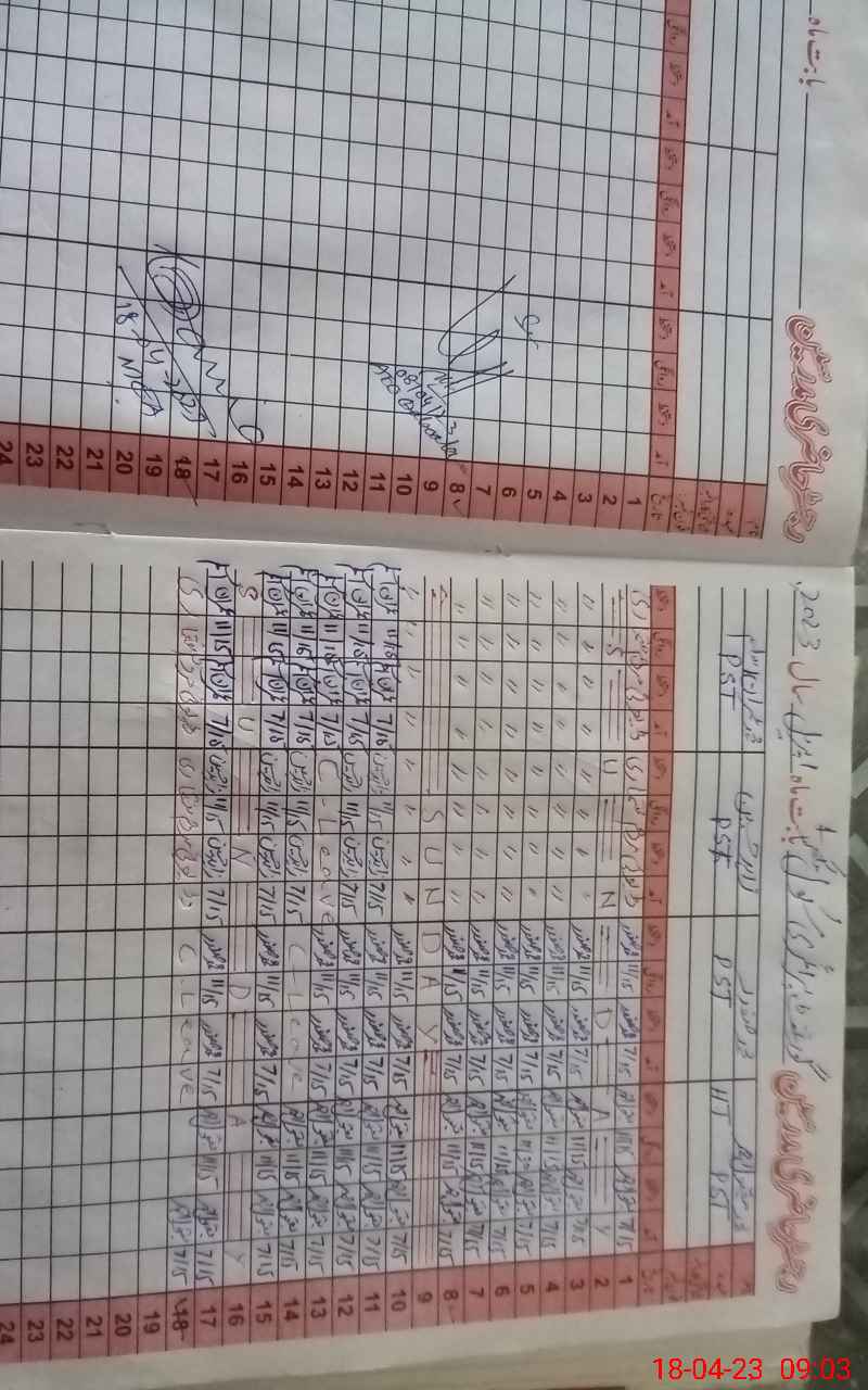 | CNIC | Full Name | Designation | R/C | Absence During Last Calender Month |
