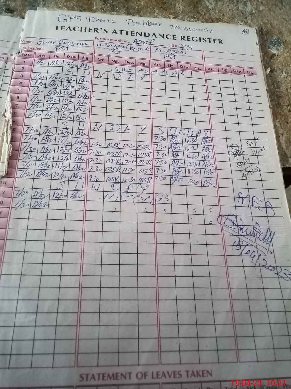 | Name: MU**** AZ**** Designation: (School Headmaster's/Headmistress's) PST Phone/Cell Number: 03**** |