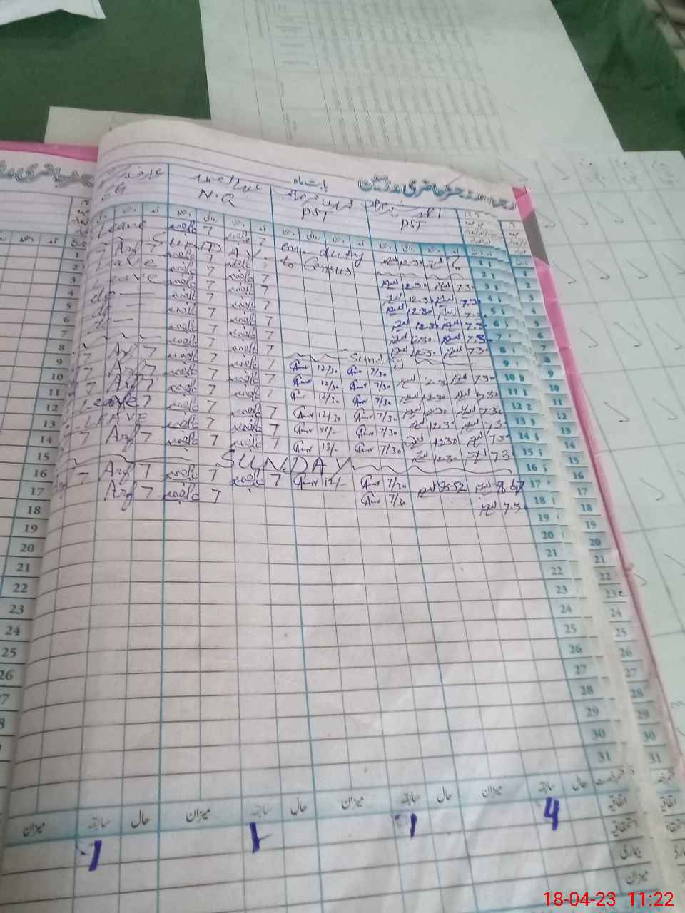 | Leave | Duty | Absent | Maternity | Medical | Ex- Pak |