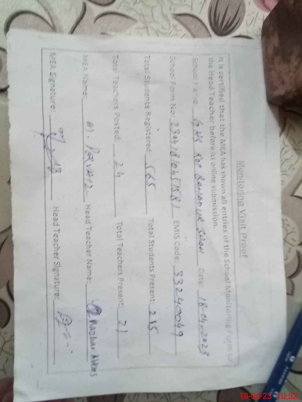 | EMIS Code: 33240049 | Name of School: GHS KOT BAHADAR SHAH | |||