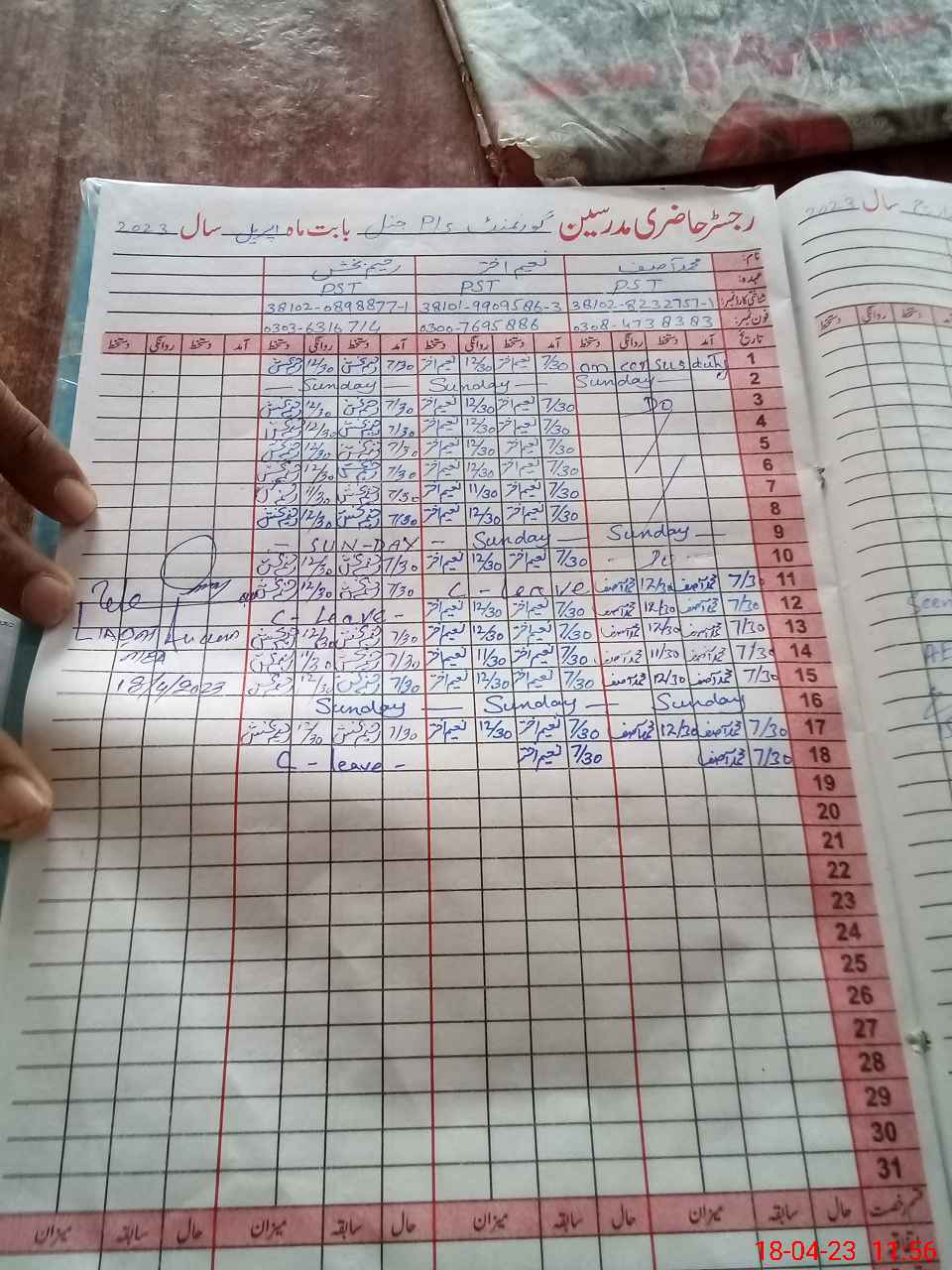 | CNIC | Full Name | Designation | R/C | Absence During Last Calender Month |