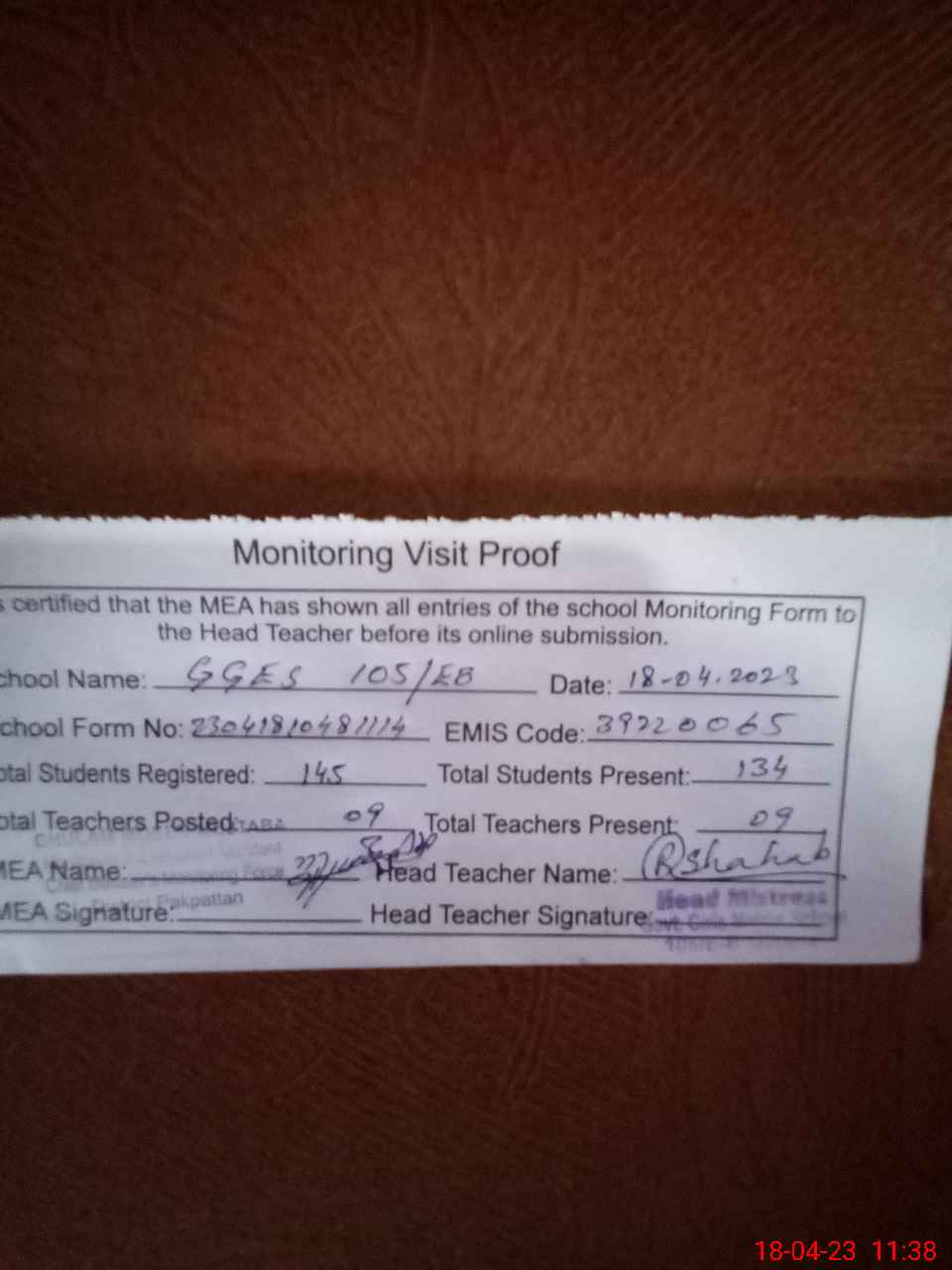 | EMIS Code: 39220065 | Name of School: GGES 105-EB | |||