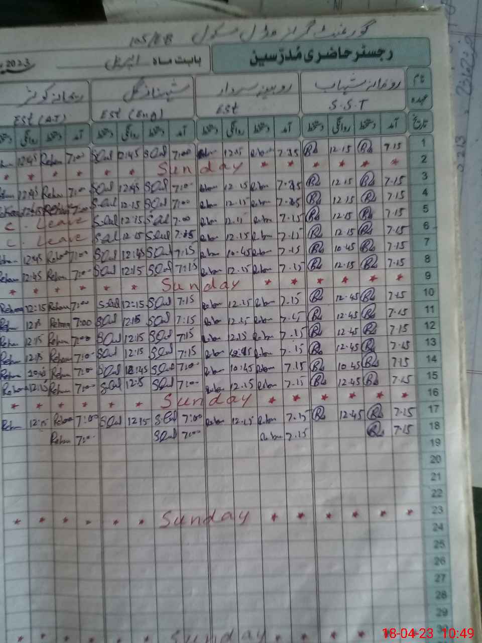 | Name: SH**** GU**** Designation: (School Headmaster's/Headmistress's) PST (GEN) Phone/Cell Number: 03**** |