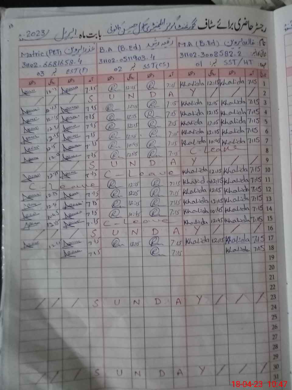 | Name: KH**** PA**** Designation: (School Headmaster's/Headmistress's) S.S.E Arts Phone/Cell Number: 03**** |