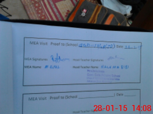 | Attendance Register | Head Teacher | MEA with School | Visit Proof |