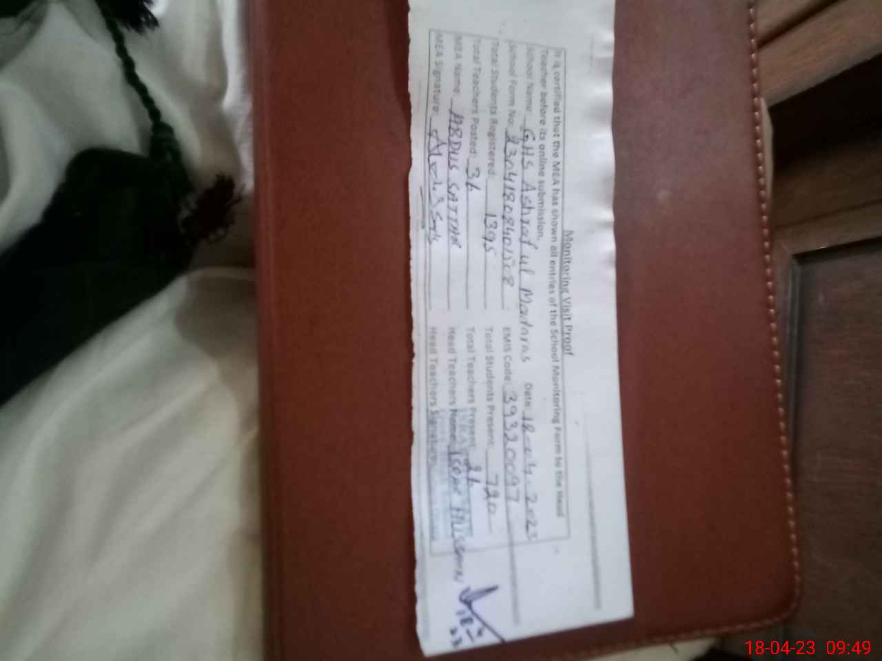 | Attendance Register | Head Teacher | MEA with School | Visit Proof |