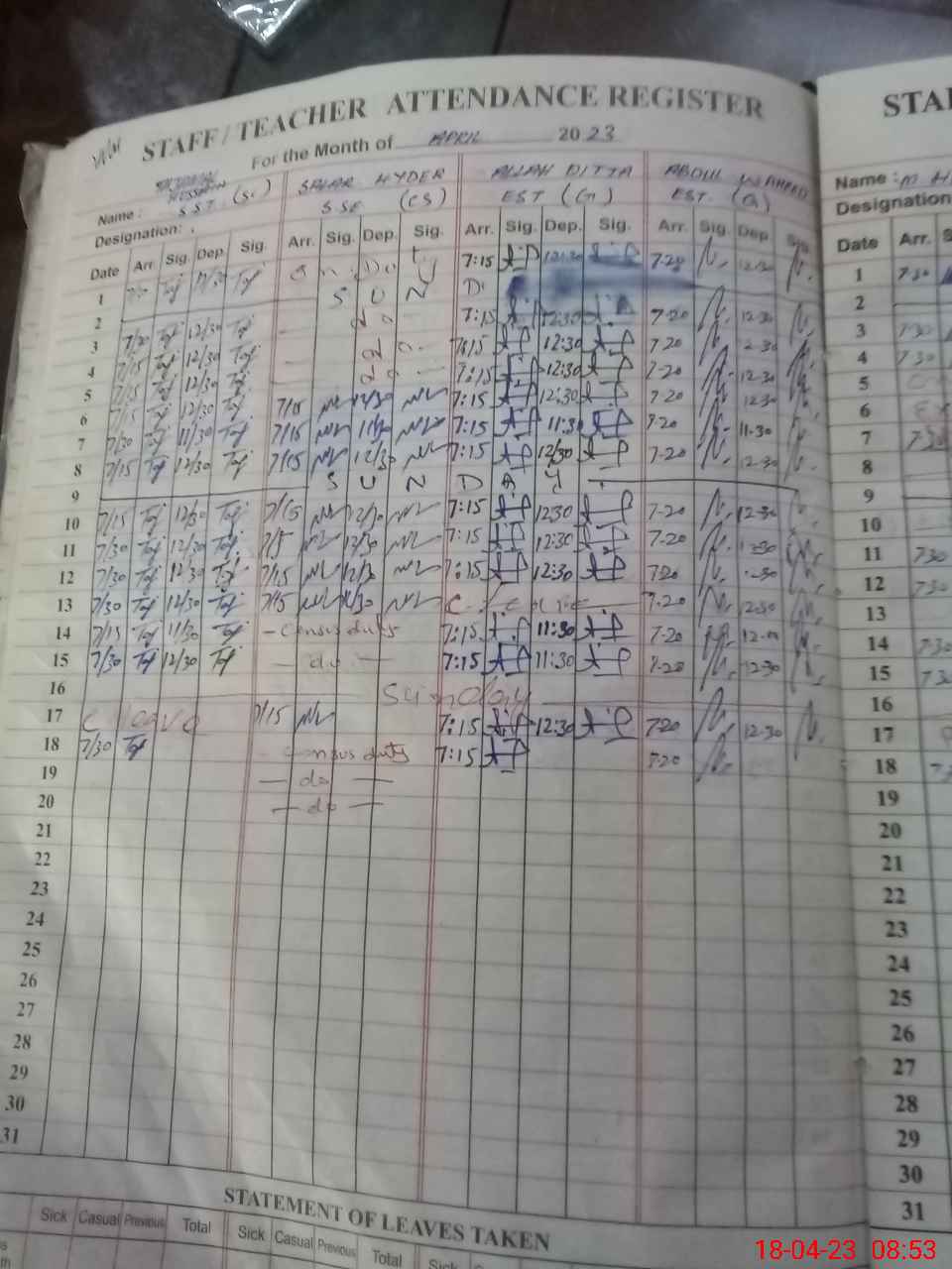 | Leave | Duty | Absent | Maternity | Medical | Ex- Pak |