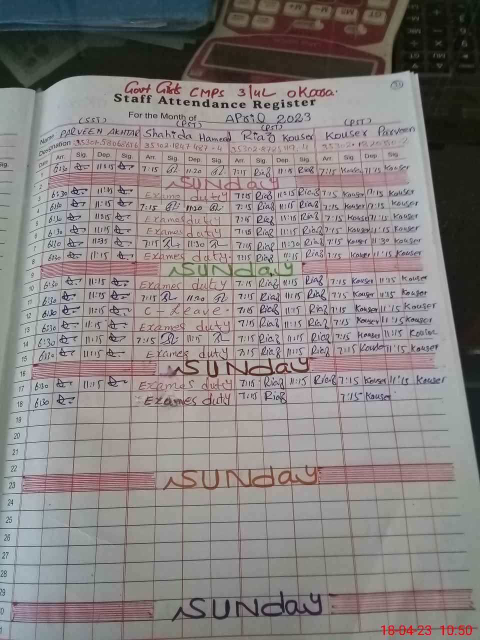 | 35**** | Sh**** Ha**** | PST | Regular | 0 | 0 | 0 | 0 | 0 | 0 | 0 | 0 | 0 | Exam Duty |